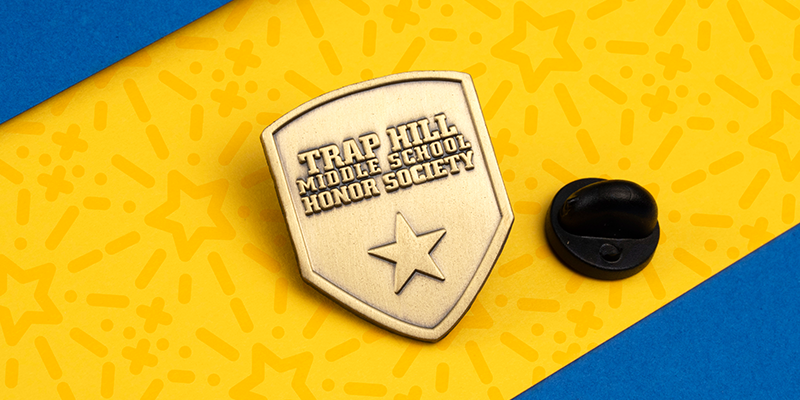 These pins have no enamel colors which allows the metal plating to accentuate the features of your pin design. We recommend antique plating styles for these pins because the reflective quality of high polish metal can obscure the smaller details in a die struck pin design. These pins are perfect for award ceremonies, anniversaries, and club accessories. The average cost for 100 die struck pins is around $280.
