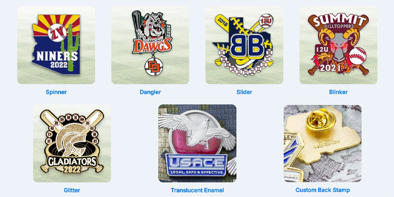 Other factors affecting custom pin pricing that are not listed on our pricing page are design upgrade options. We offer an array of upgrade and premium attachment options that range in prices. If you would like to include upgrades from the list below, our sales team will be happy to create custom pricing for you!